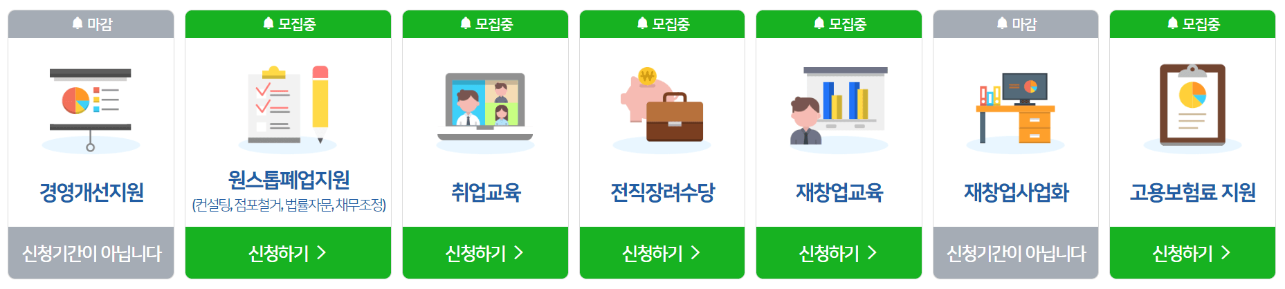 - 위 1번의 원스톱폐업지원(사업정리 컨설팅) 수료 + 구직활동인정사업 참여